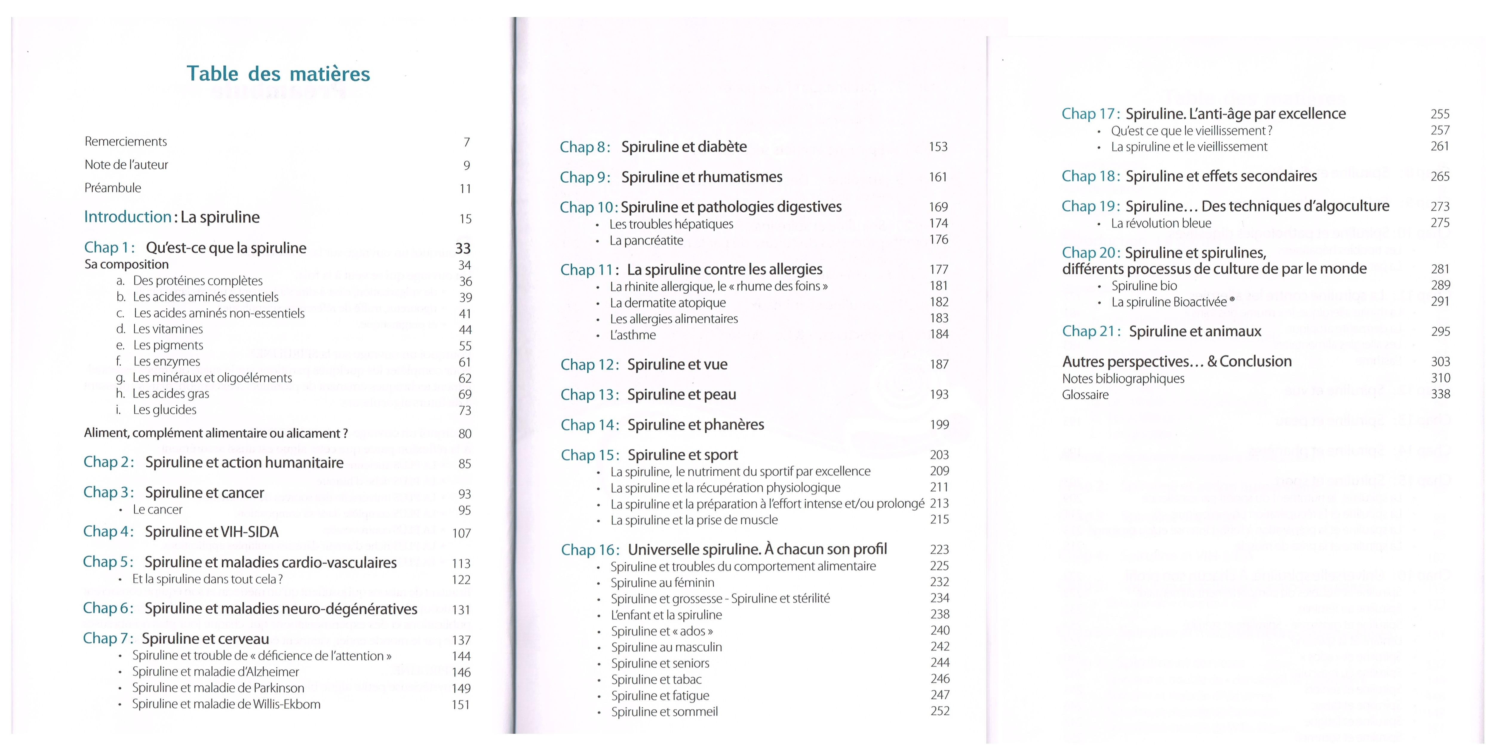 Concernant ce produit, il existe un livre fabuleux du spécialiste français de la spiruline, le Dr Vidalo (voir le sommaire de ce livre).